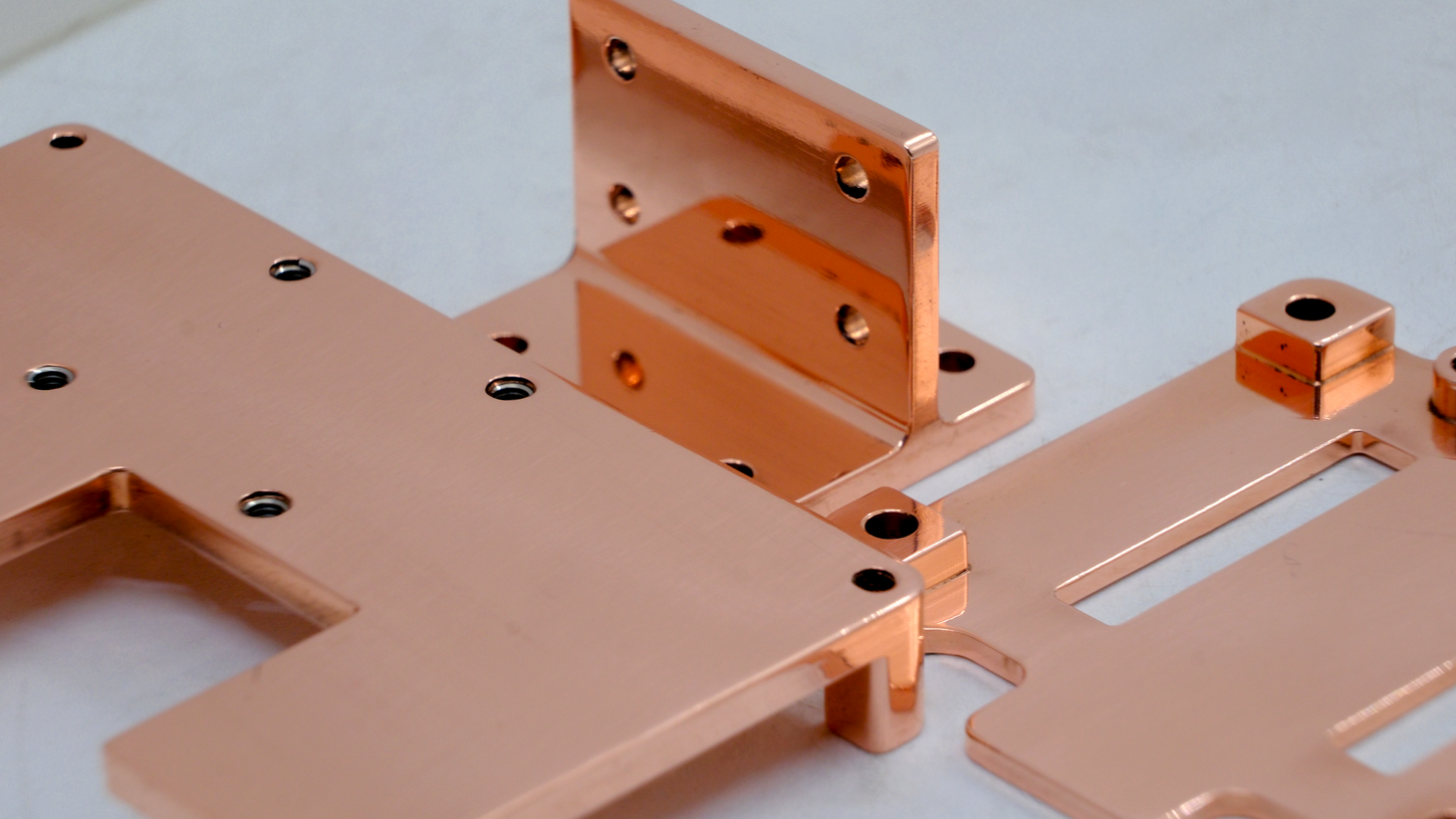 These copper components were CNC milled from Cu-ETP to achieve precise geometry and excellent surface quality. After machining, we applied polishing to improve conductivity performance and visual finish, ensuring the parts met strict aerospace requirements.